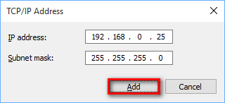 Specify additional IP addresses with subnet masks and press Add: